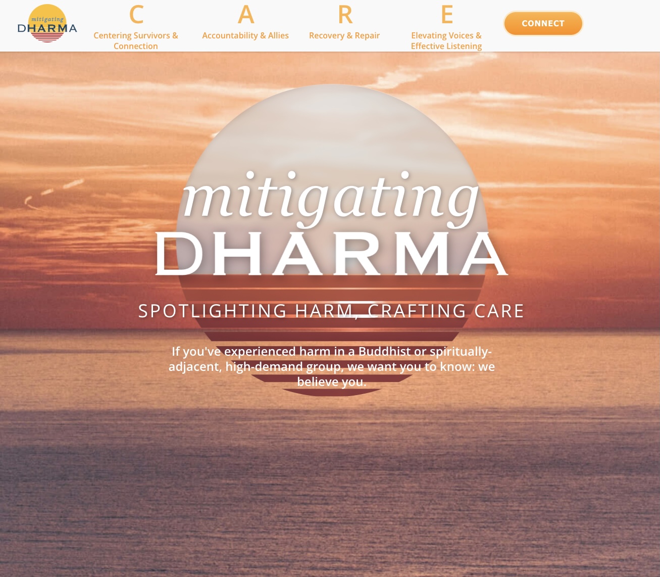 “The seed for mitigating dHARMa was planted when [I], in a period of intensive practice as a formal student within a renowned Zen Center in the U.S., made a bystander reporting of sexual harassment of a young female resident. I was subsequently retaliated upon by the perpetrator while on retreat, and experienced a doubling-down of the harm by my spiritual teacher and the Center’s leadership as I pressed for accountability.